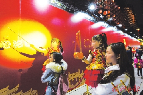 昨晚,市民点亮桔灯,为百城送福。